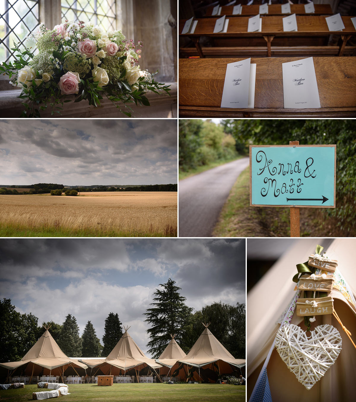 A beautiful country wedding in the heart of Hertfordshire. A giant Tee-Pee for the guests to eat and party the night away, and tents on site for guests to sleep in…, the perfect wedding day…and what a stunning dress!